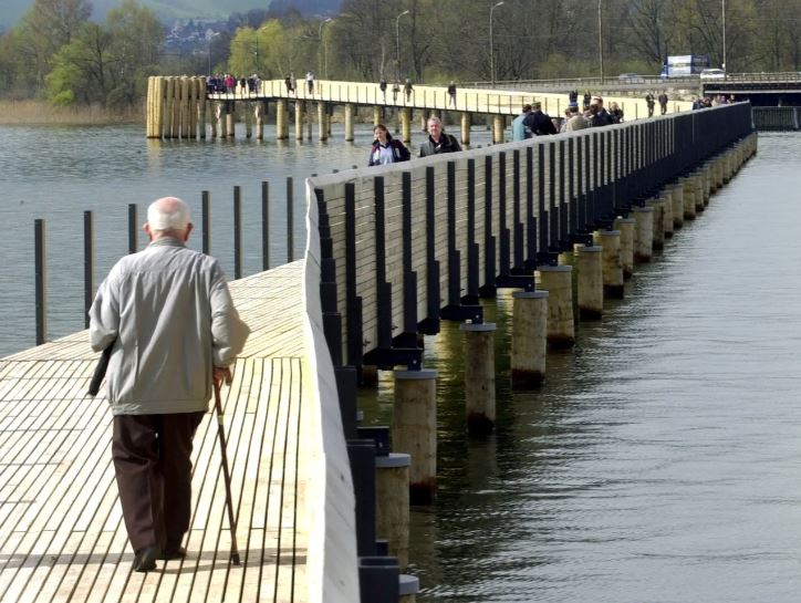 Extrait : Tous les poteaux de la passerelle qui enjambe le lac de Zurich sont infestés par un champignon qui les fait pourrir. Elle mesure deux mètres et demi de large, 841 mètres de long et fêtera bientôt son 25e anniversaire. Depuis son inauguration en 2001, la passerelle en bois entre Hurden (SZ) et Rapperswil-Jona (SG) au-dessus du lac de Zurich, le long de la digue, est devenue incontournable. Mais le plus long pont en bois de Suisse est menacé. Alors que la passerelle est devenue au fil des ans un pôle d’attraction touristique et un emblème de la région, un champignon ronge les pieux en chêne. Ce champignon s’appelle la Dédalée du chêne, une espèce qui attaque le bois de chêne et le fait pourrir. À l’heure actuelle, tous les piliers sur les 841 mètres sont touchés, mais à des degrés divers. Les piliers en chêne massif auraient dû avoir une durée de vie entre 50 et 80 ans. Un champignon contre le champignon Ces dernières années, les autorités ont tenté de lutter contre la dégradation de …